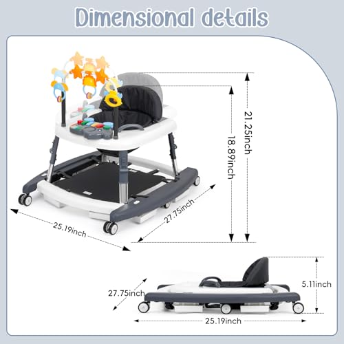 5-in-1 Music and Lights Baby Walker Foldable with 5 Adjustable Heights, Baby Walker with Wheels and Bouncer Combo Portable, Infant Toddler Walker for Baby Boy Girls 6-18 Months
