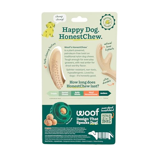 WOOF HonestChew Dog Toy Antler – Durable Dog Chew Toy – Made with Natural, Plant-Based Ingredients – Splinter-Resistant – Safer Than Dog Bones – Medium